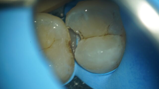 虫歯を取っていくと隣の歯の隣接面が見えたので一緒に確認します。すると隣の歯も虫歯になっているのが見えました。