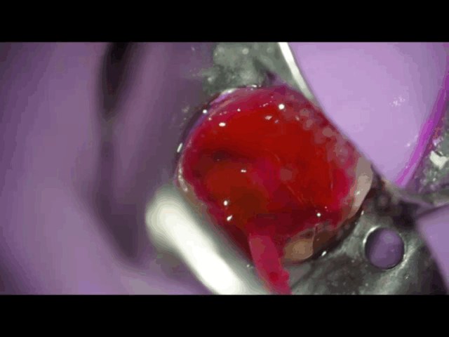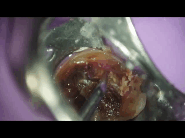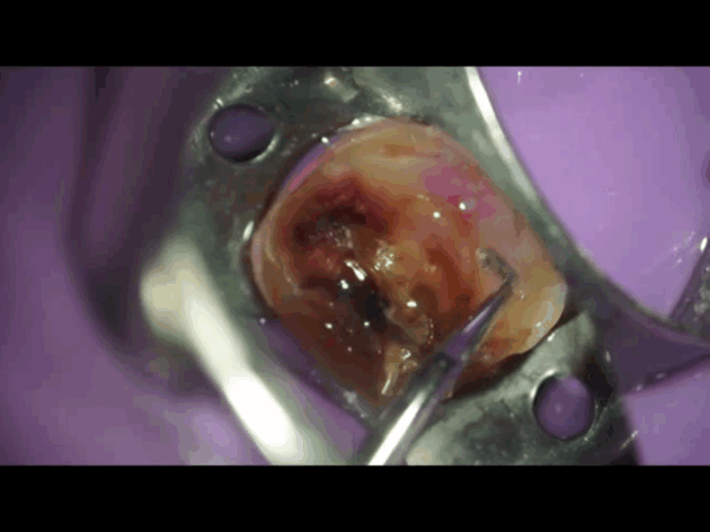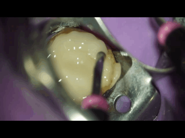 まだ虫歯が残っているので再度エキスカ(虫歯を取る器具)で削って硬さや削りカスを見て虫歯かそうじゃないか判断します。 -