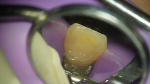 歯茎より上の歯がほぼないとラバーダム(雑菌が入らないようにかけるゴムのシート)をかける為の器具が付けられないので壁を作りました。