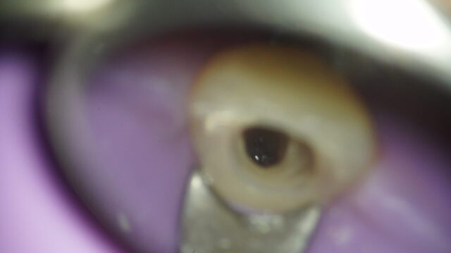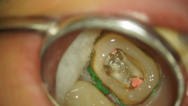 根の治療でマイクロスコープ(精密な治療をする為の歯科用顕微鏡)とラバーダム(雑菌が入らないようにかけるゴムのシート)は必須になります。ラバーダムがかけれない状態の場合は壁を作る工程が追加で必要になります。
