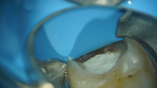虫歯削っていくと神経の穴が出ました。神経が生きているので歯髄温存療法を行いました。